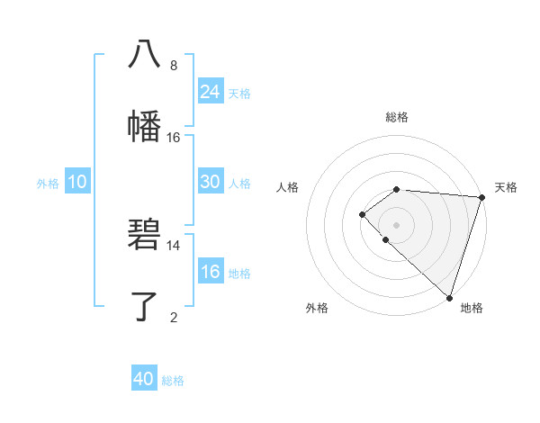 八幡 碧了さんの総格は40画の2点!