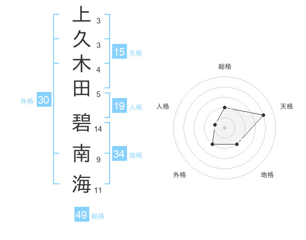 上久木田 碧南海さんを姓名の画数から五運を鑑定