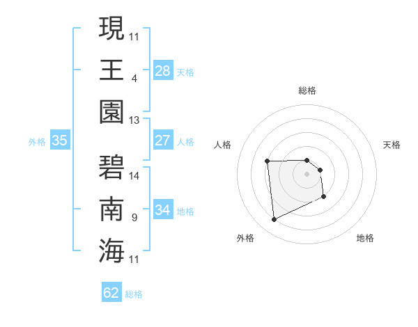 現王園 碧南海さんを姓名の画数から五運を鑑定