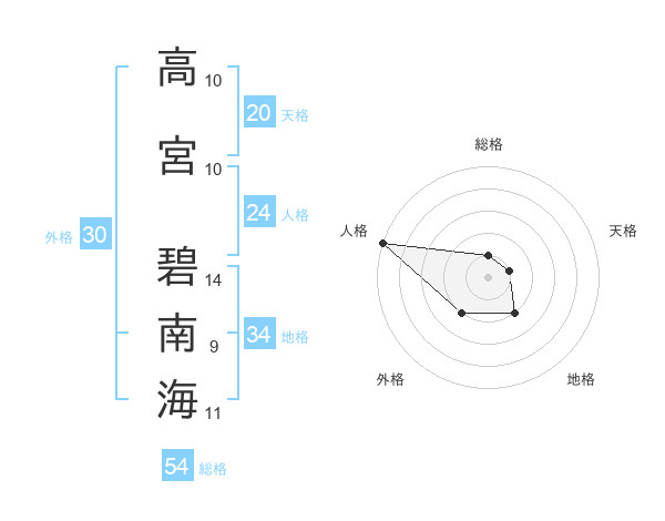 高宮 碧南海さんを姓名の画数から五運を鑑定