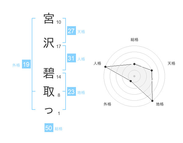 宮沢 碧取っさんを姓名の画数から五運を鑑定