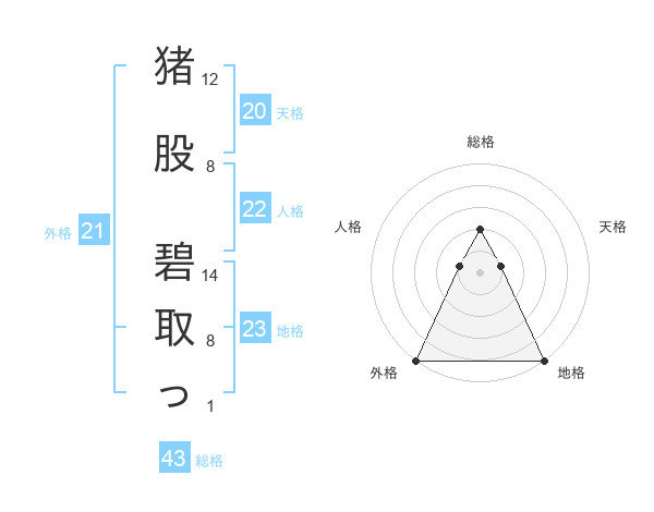 猪股 碧取っさんの外格は21画の5点!