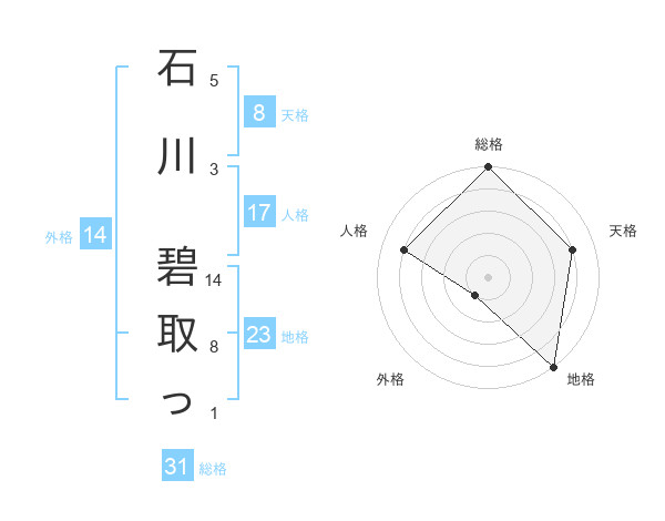 石川 碧取っさんの総格は31画の5点!