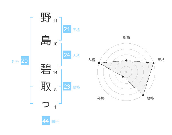 野島 碧取っさんを姓名の画数から五運を鑑定