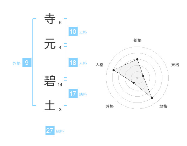 寺元 碧土さんの総格は27画の3点!