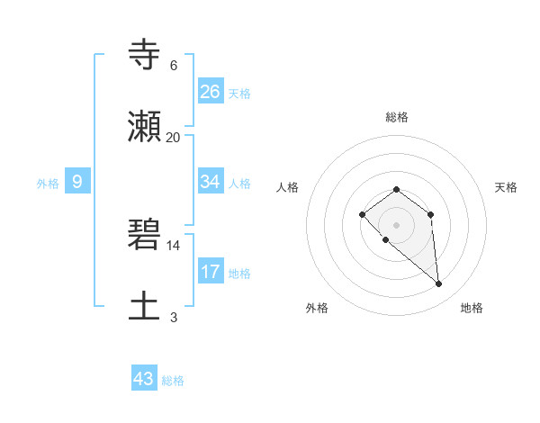 寺瀬 碧土さんの総格は43画の2点!