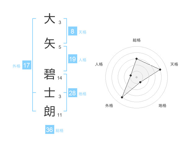 大矢 碧士朗さんを姓名の画数から五運を鑑定