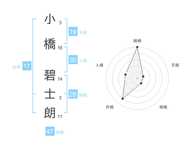 小橋 碧士朗さんを姓名の画数から五運を鑑定