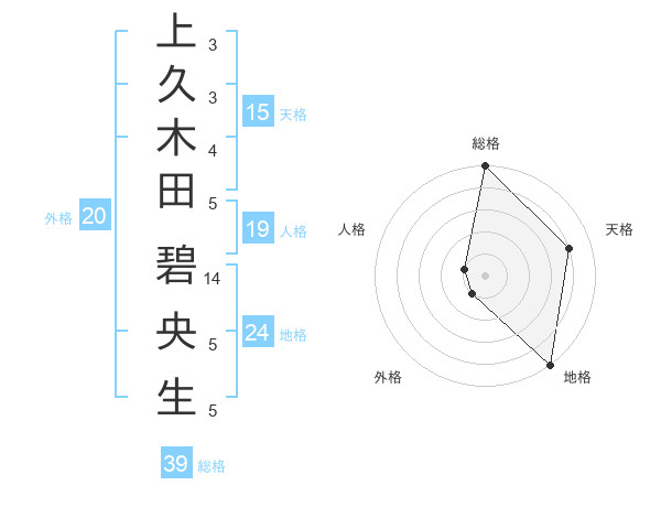 上久木田 碧央生さんを姓名の画数から五運を鑑定