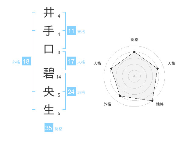 井手口 碧央生さんの総格は35画の4点!