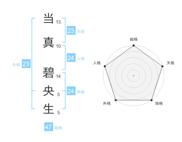 当真 碧央生さんの総格は47画の5点!