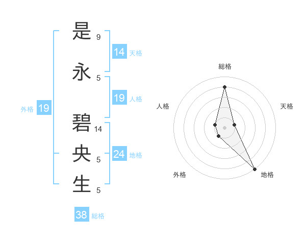 是永 碧央生さんを姓名の画数から五運を鑑定