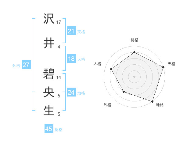 沢井 碧央生さんを姓名の画数から五運を鑑定