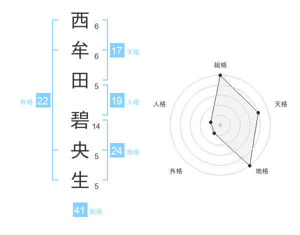 西牟田 碧央生さんを姓名の画数から五運を鑑定