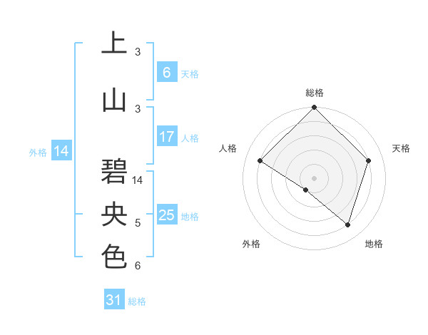 上山 碧央色さんの総格は31画の5点!
