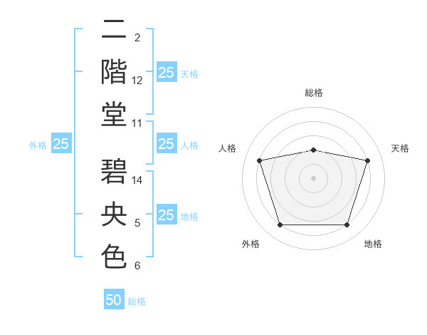 二階堂 碧央色さんを姓名の画数から五運を鑑定