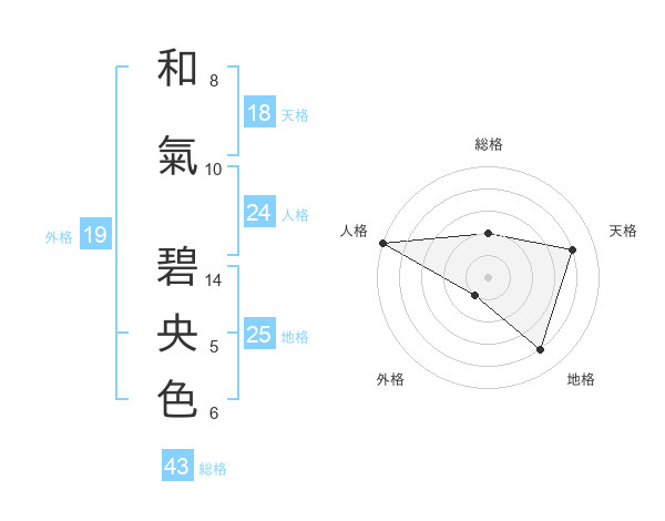 和氣 碧央色さんの総格は43画の2点!