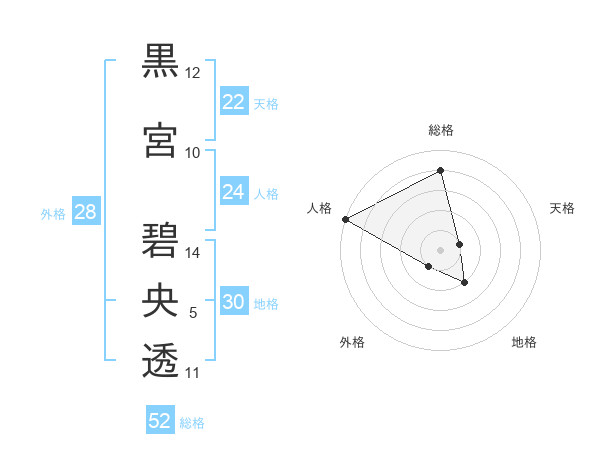 黒宮 碧央透さんの総格は52画の4点