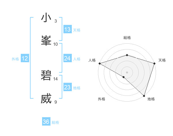 小峯 碧威さんを姓名の画数から五運を鑑定