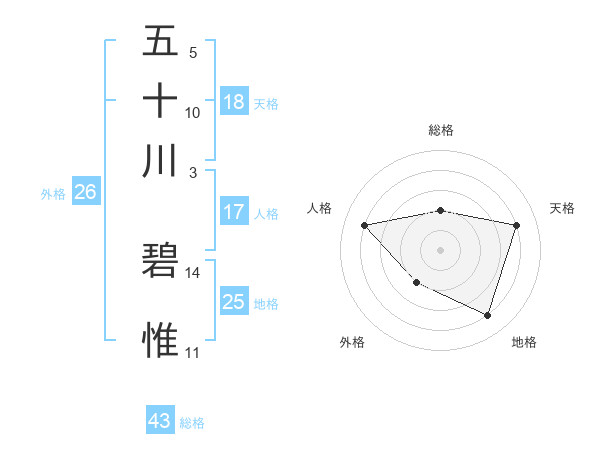 五十川 碧惟さんを姓名の画数から五運を鑑定