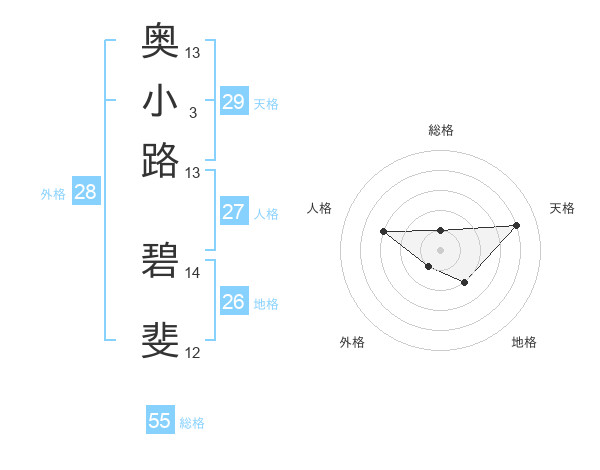 奥小路 碧斐さんを姓名の画数から五運を鑑定