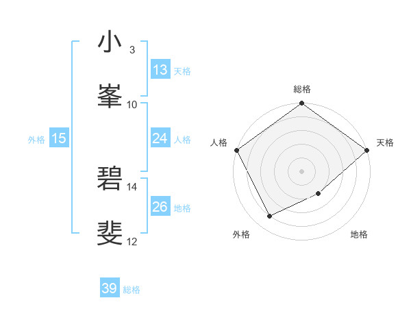 小峯 碧斐さんを姓名の画数から五運を鑑定