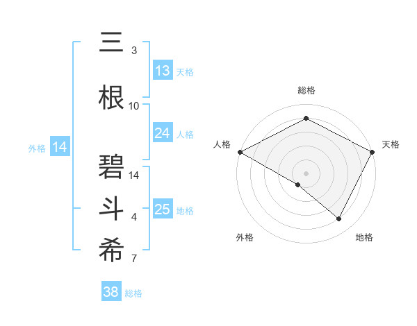 三根 碧斗希さんを姓名の画数から五運を鑑定