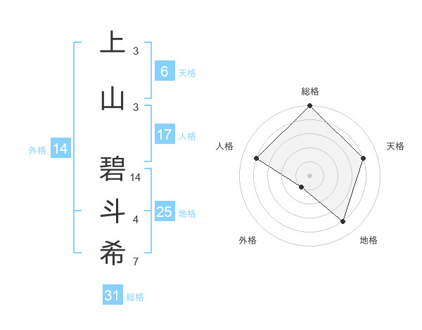 上山 碧斗希さんを姓名の画数から五運を鑑定