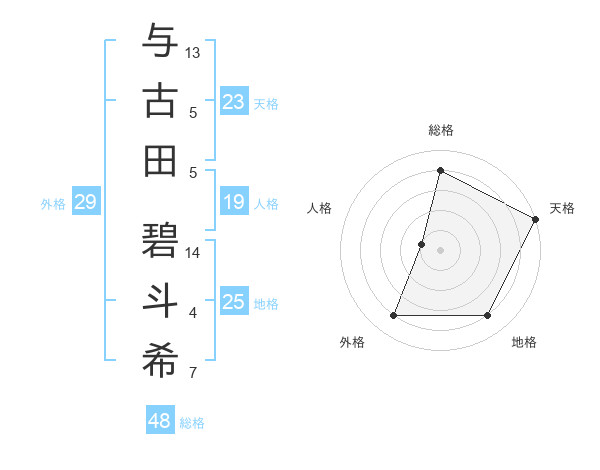 与古田 碧斗希さんの天格は23画の5点!