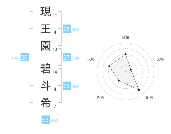 現王園 碧斗希さんの天格は28画の1点!