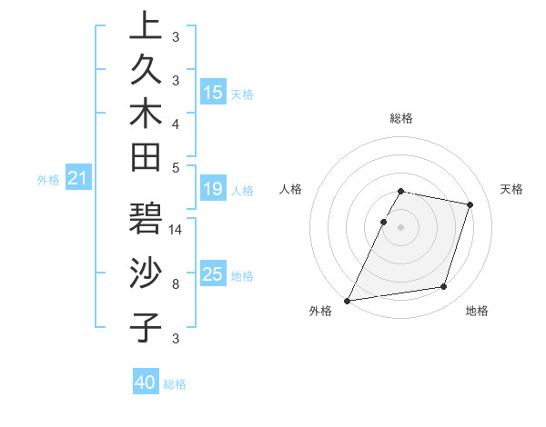 上久木田 碧沙子さんの天格は15画の4点!