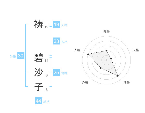 祷 碧沙子さんを姓名の画数から五運を鑑定