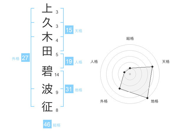 上久木田 碧波征さんの地格は31画の5点!