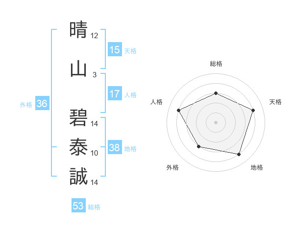 晴山 碧泰誠さんを姓名の画数から五運を鑑定