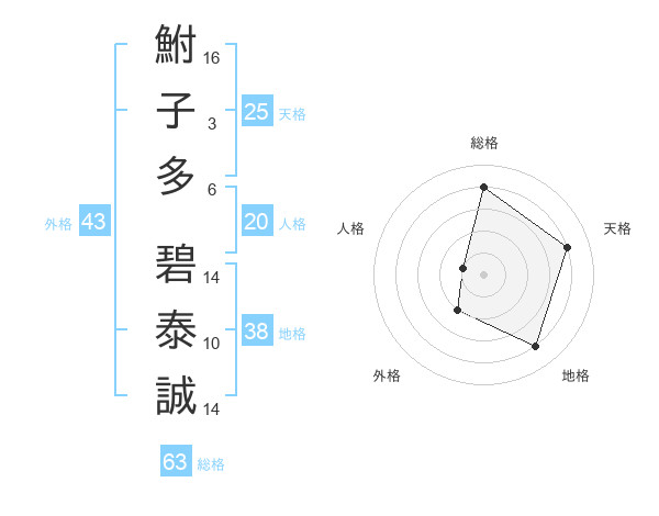 鮒子多 碧泰誠さんの名前の鑑定結果は!