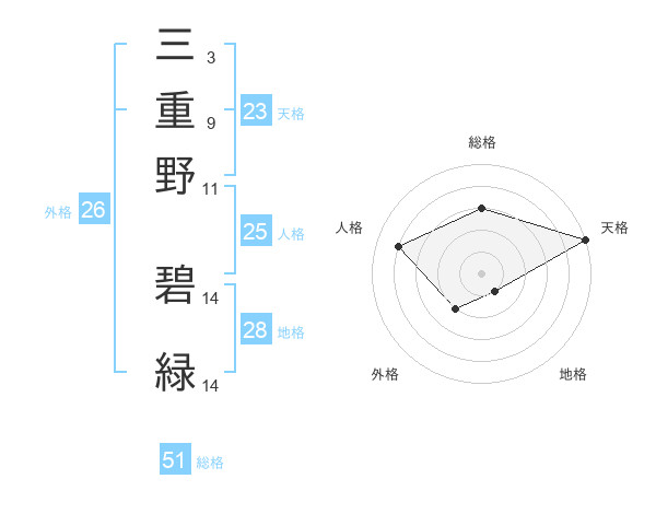 三重野 碧緑さんの総格は51画の3点!