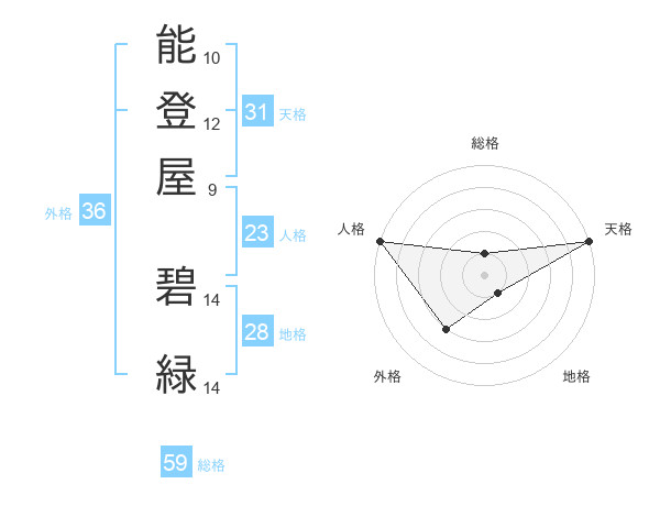 能登屋 碧緑さんを姓名の画数から五運を鑑定