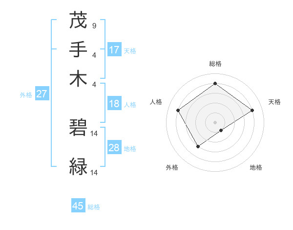 茂手木 碧緑さんを姓名の画数から五運を鑑定
