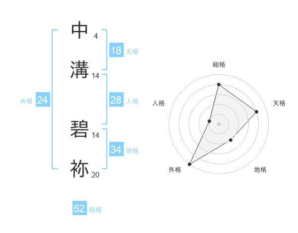 中溝 碧袮さんの総格は52画の4点!