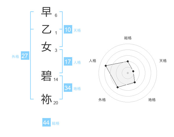 早乙女 碧袮さんの総格は44画の2点!