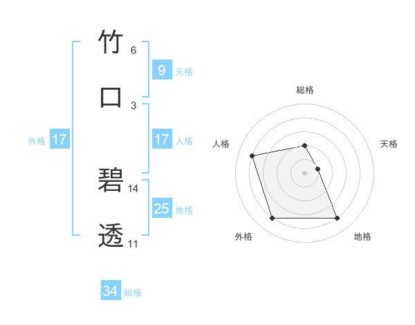 竹口 碧透さんの総格は34画の2点!
