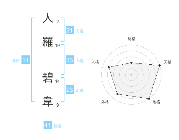 人羅 碧韋さんの天格は21画の5点!