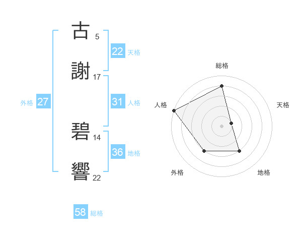 古謝 碧響さんの総格は58画の4点!