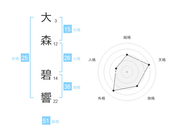 大森 碧響さんの総格は51画の3点!