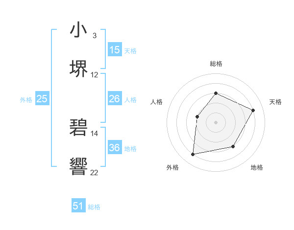 小堺 碧響さんを姓名の画数から五運を鑑定