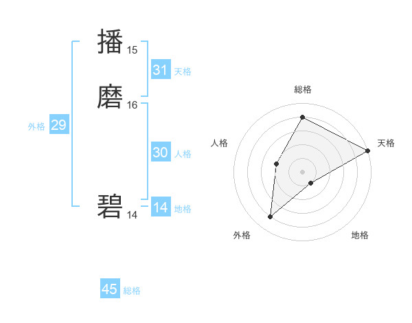 播磨 碧さんの総格は45画の4点!