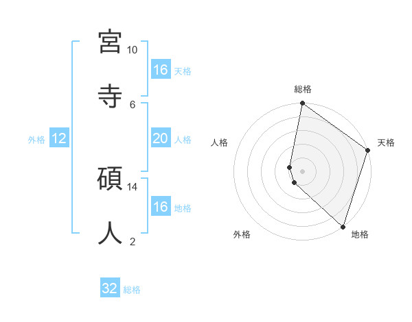 宮寺 碩人さんを姓名の画数から五運を鑑定