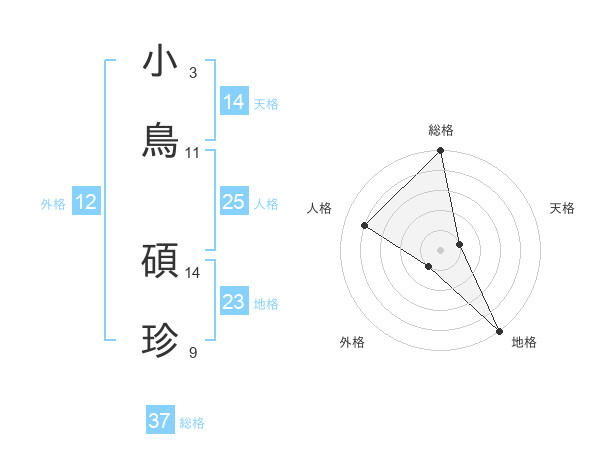 小鳥 碩珍さんの総格は37画の5点!
