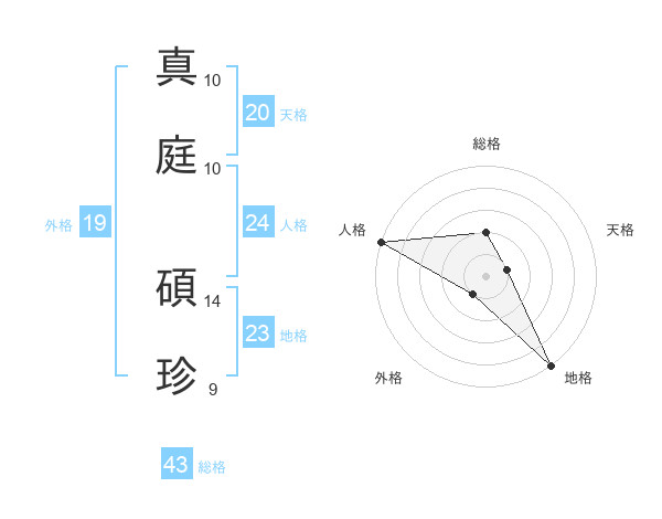 真庭 碩珍さんを姓名の画数から五運を鑑定