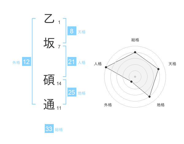 乙坂 碩通さんの地格は25画の4点!